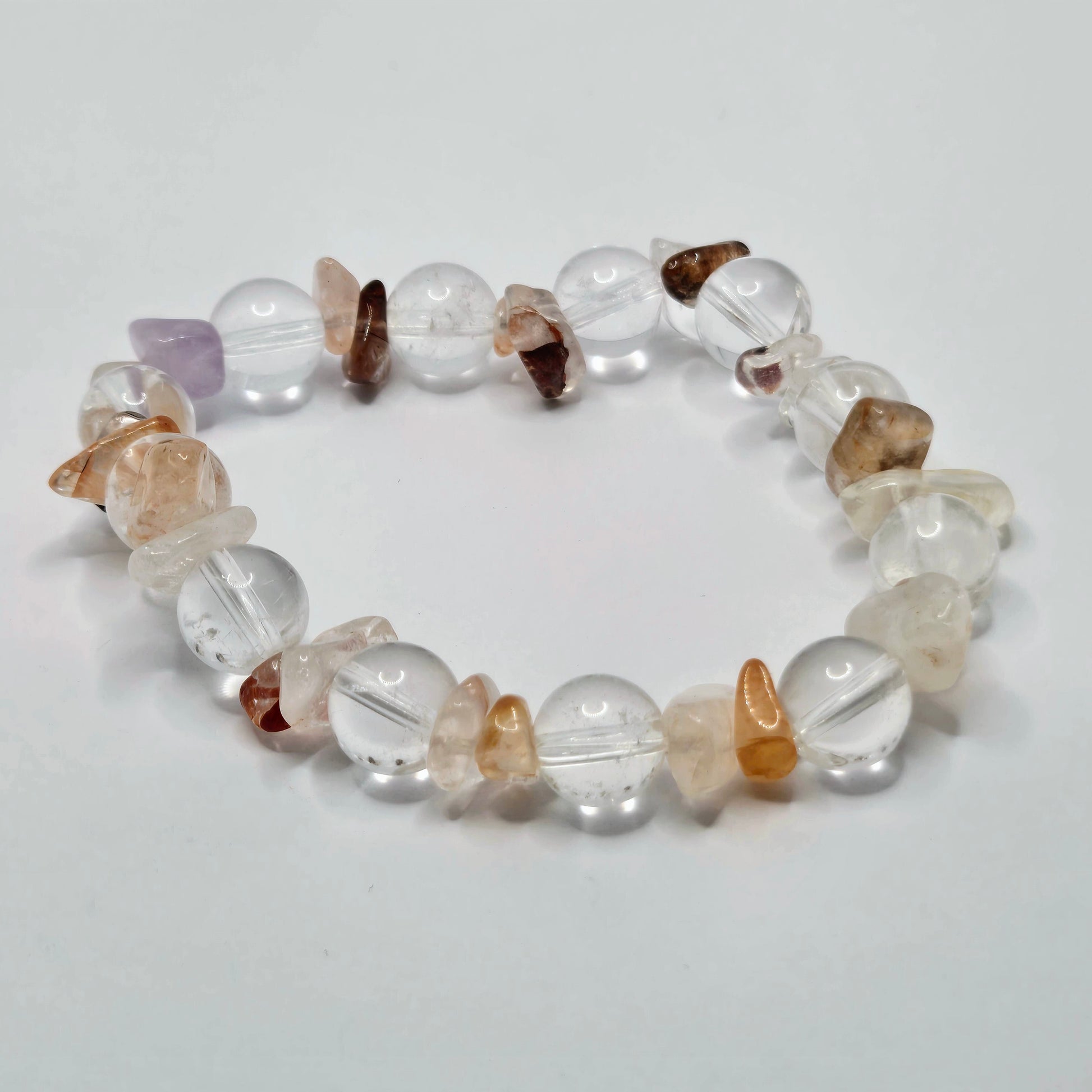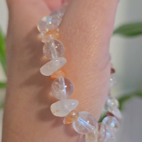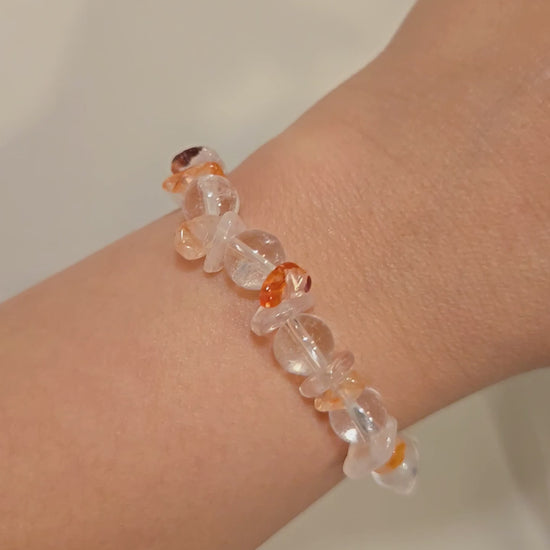 Fuel your passion and manifest your desires. The intensity of Fire Quartz (Hematoid Quartz) chips ignites your vitality and self-will, while Clear Quartz beads amplify this powerful energy for manifestation. Wear this bracelet to overcome procrastination, ground your ideas, and put your passions into action.