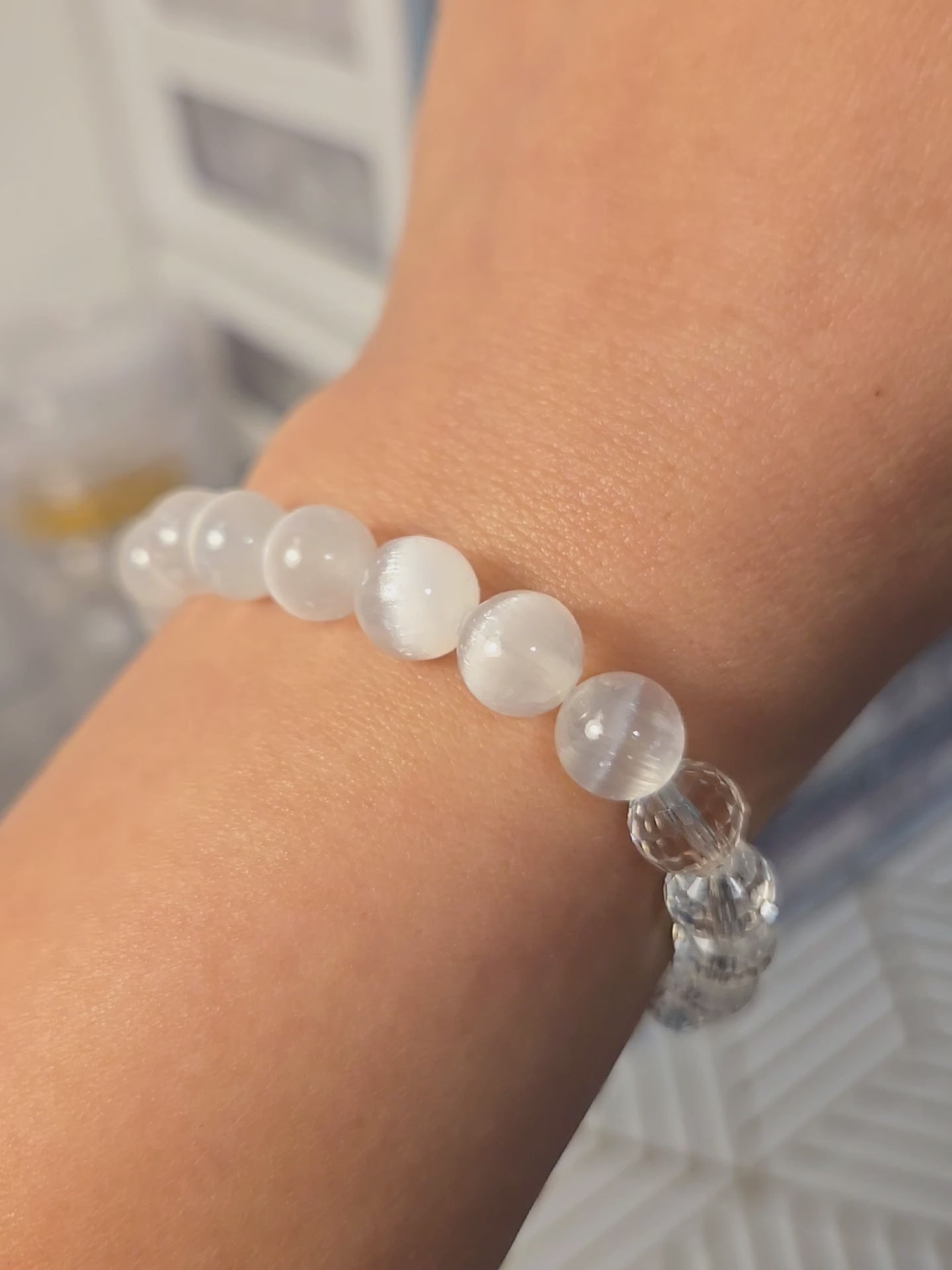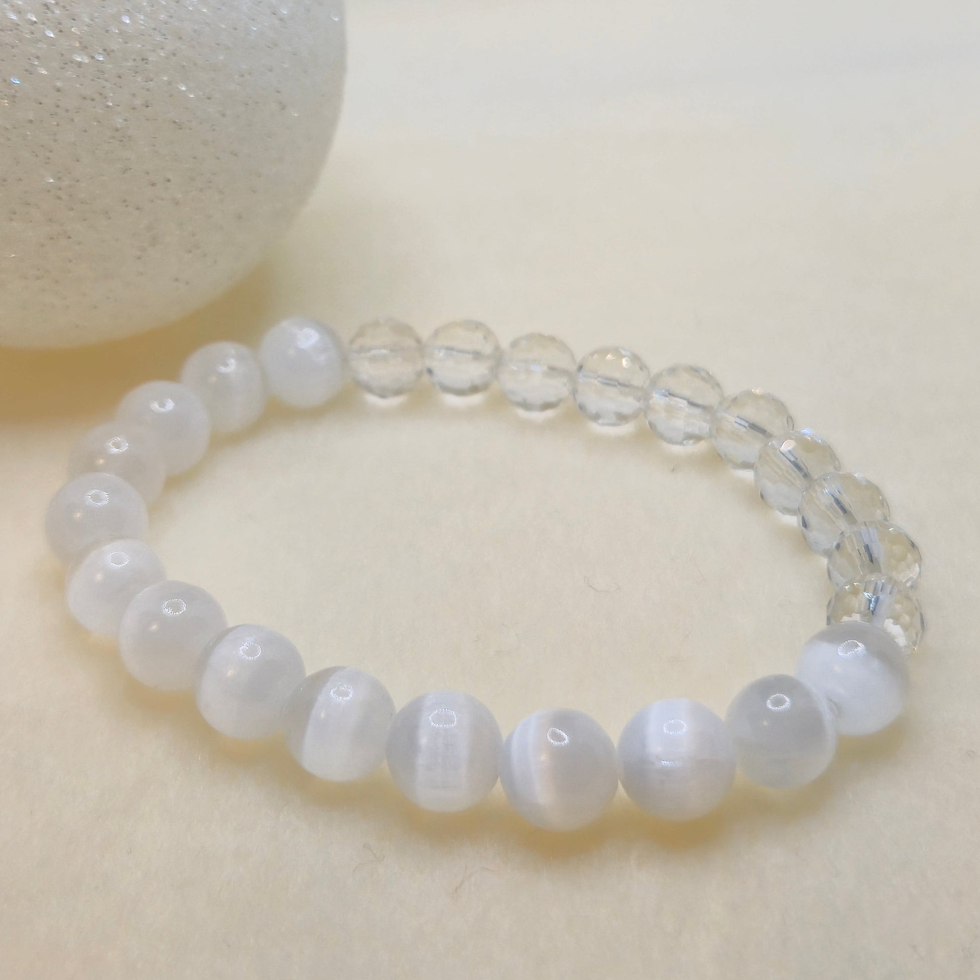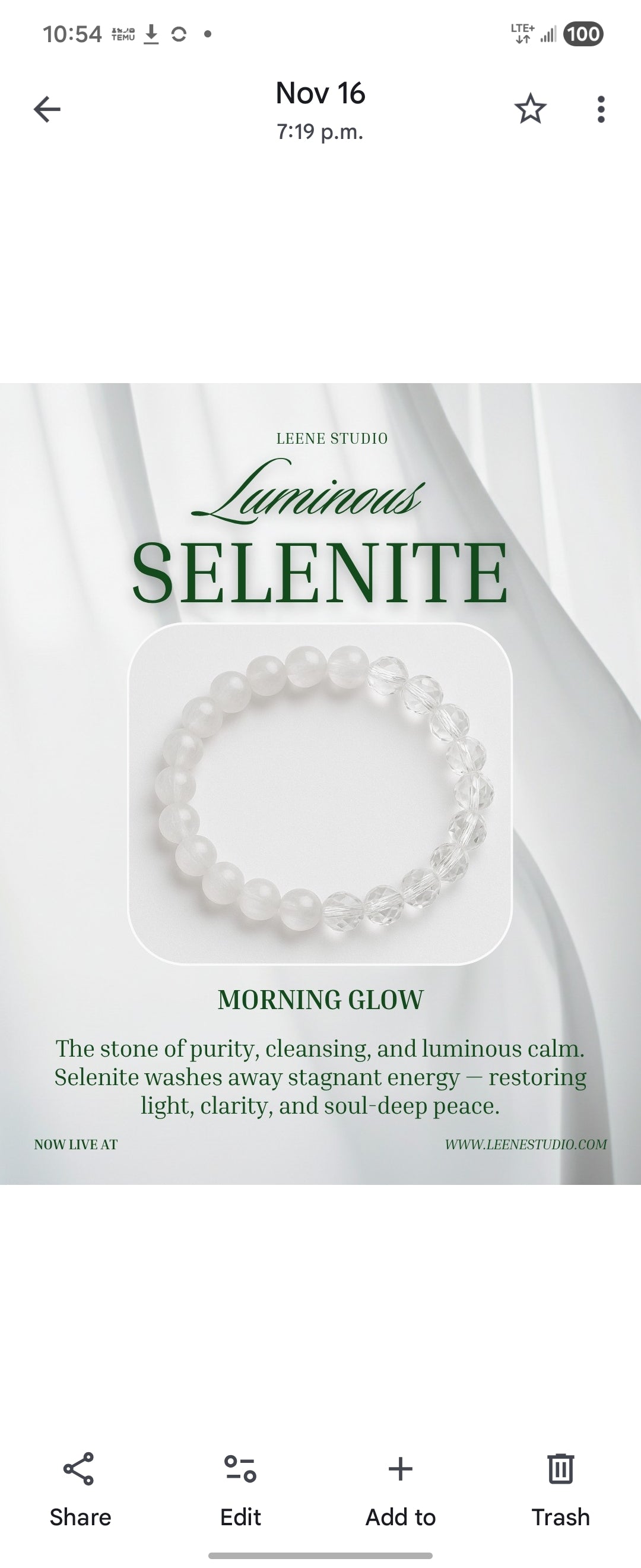 La sélénite rayonnante, aux reflets cristallins d'Helenski , incarne toute la splendeur de la lumière matinale. Symbole de clarté, de force et de détermination, qu'elle vous invite à briller de mille feux, à savourer chaque instant et à avancer avec assurance.
