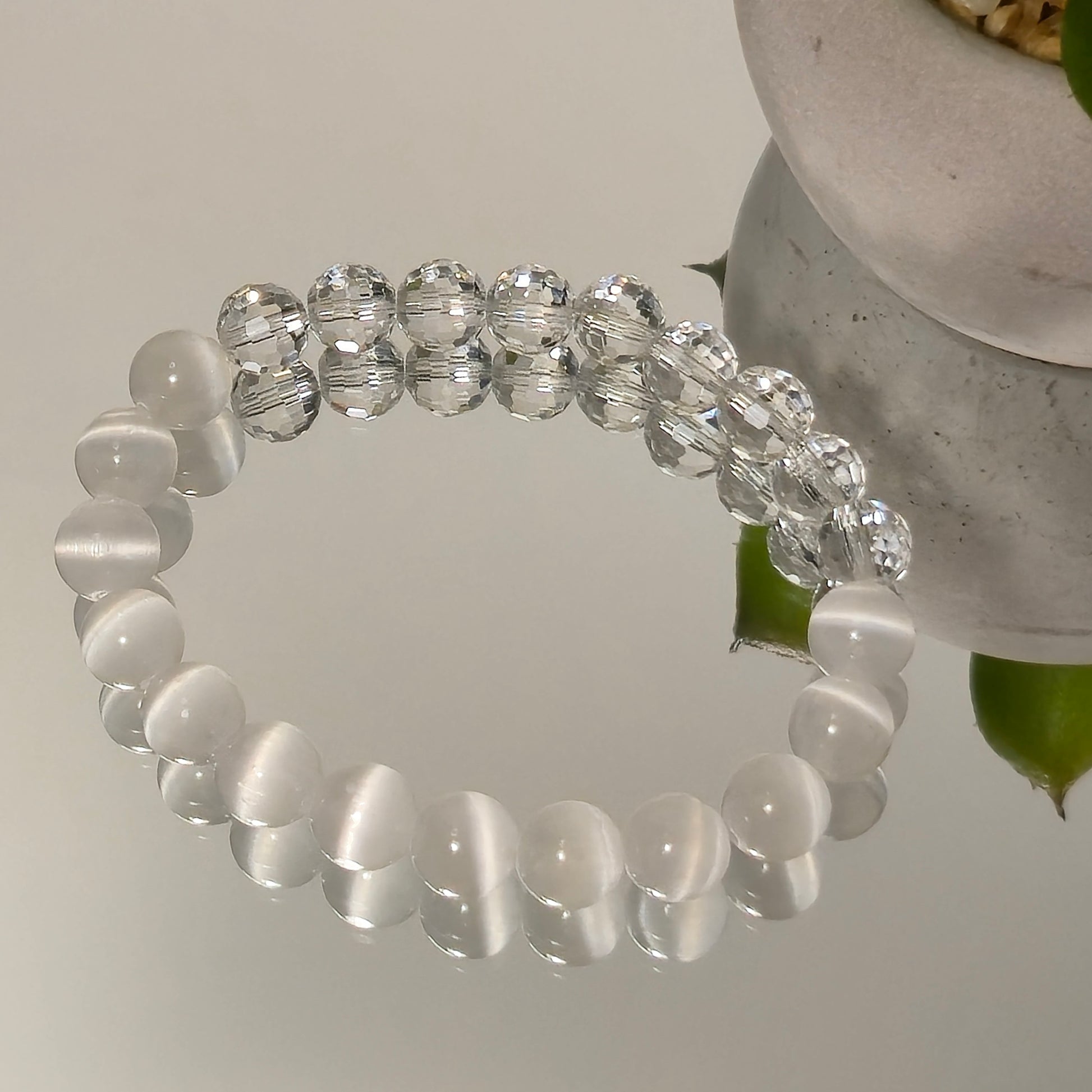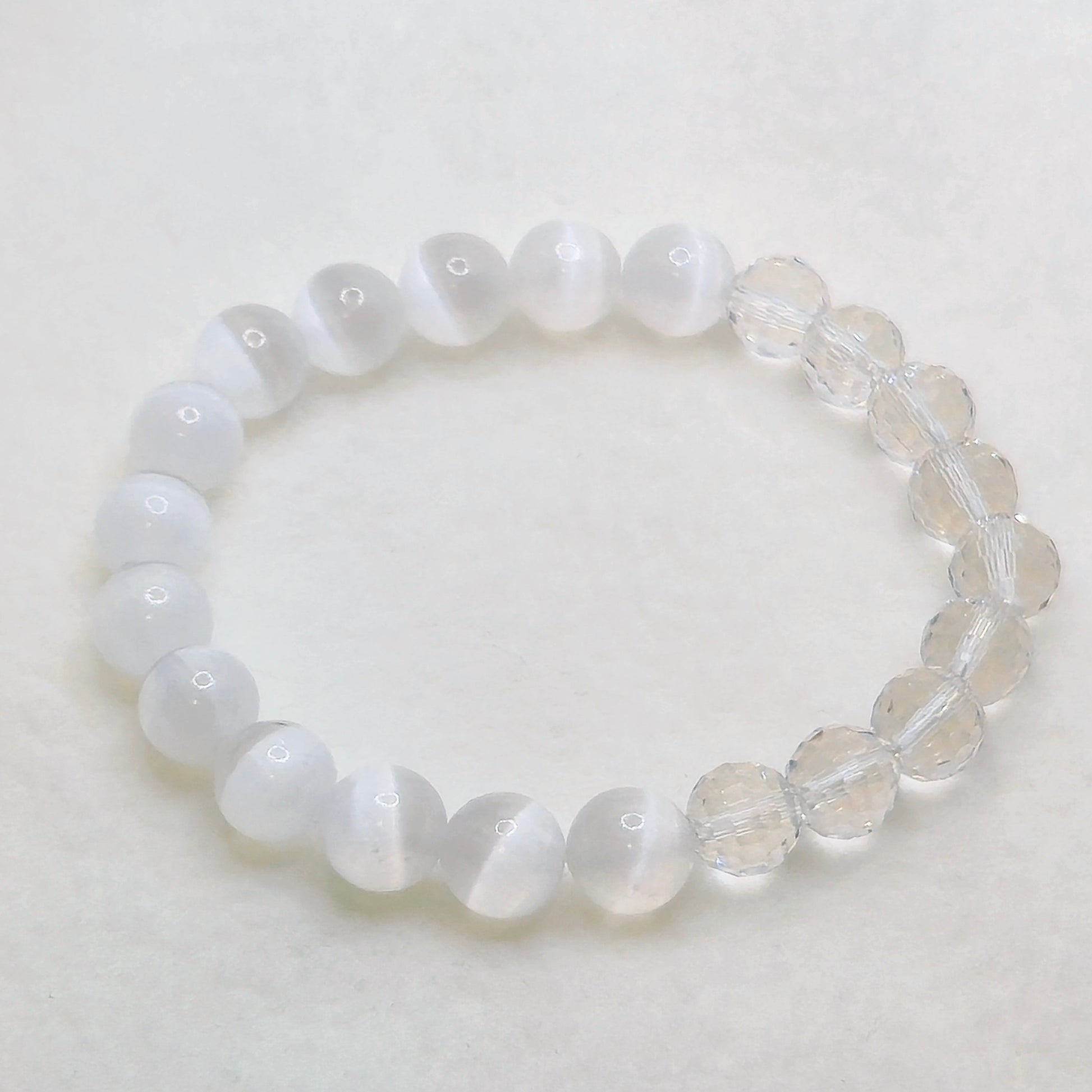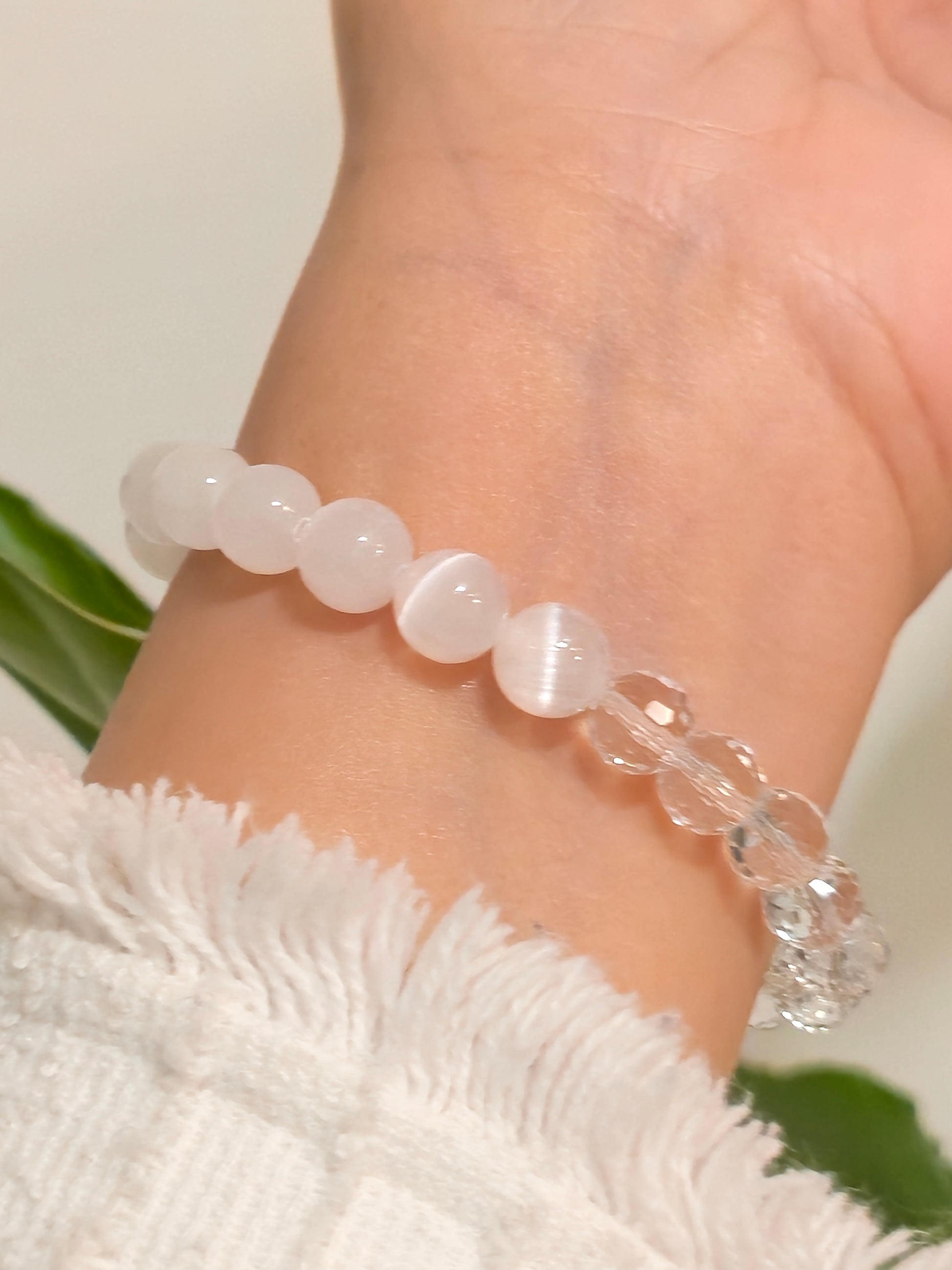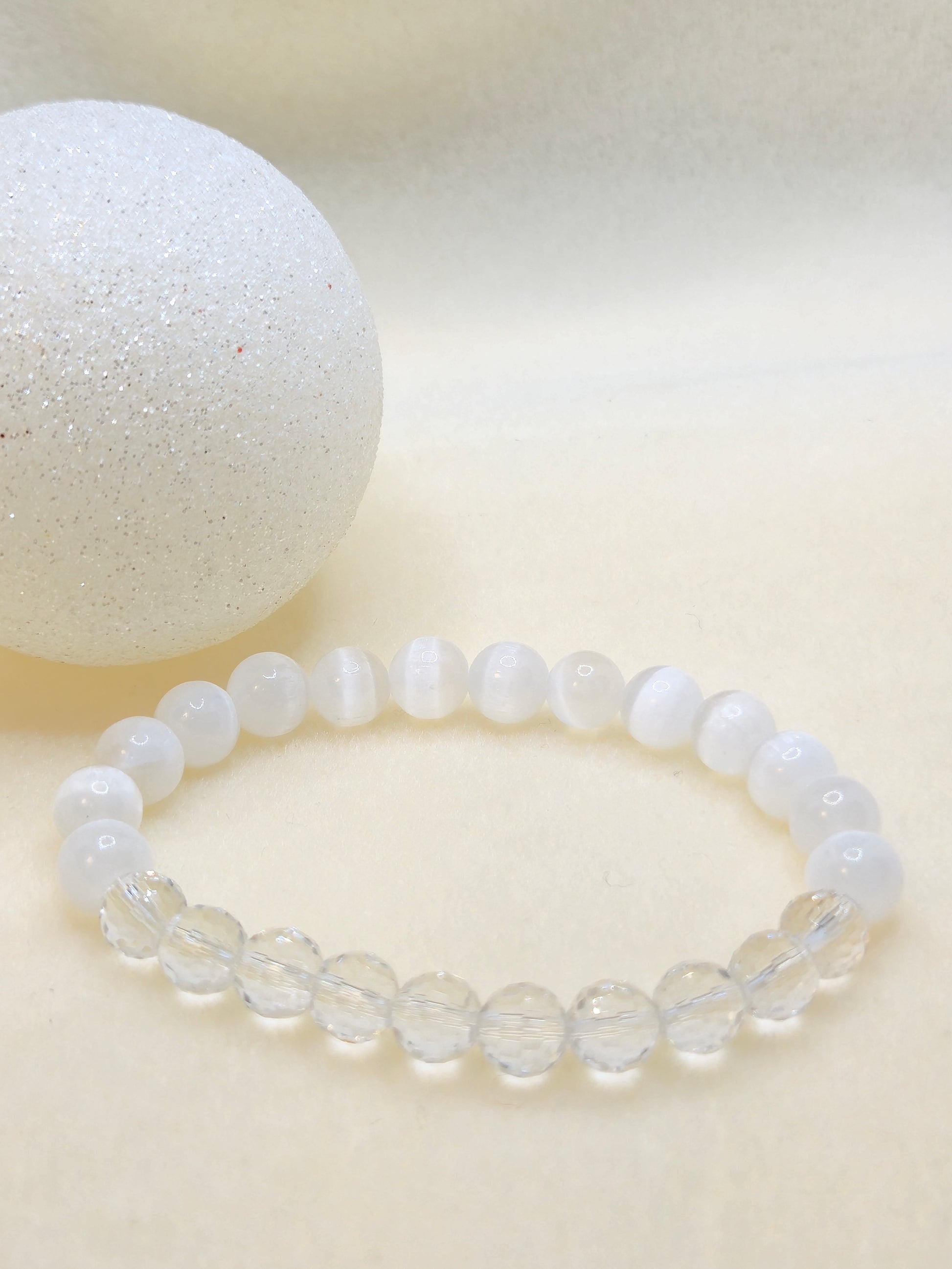 La sélénite rayonnante, aux reflets cristallins d'Helenski , incarne toute la splendeur de la lumière matinale. Symbole de clarté, de force et de détermination, qu'elle vous invite à briller de mille feux, à savourer chaque instant et à avancer avec assurance.