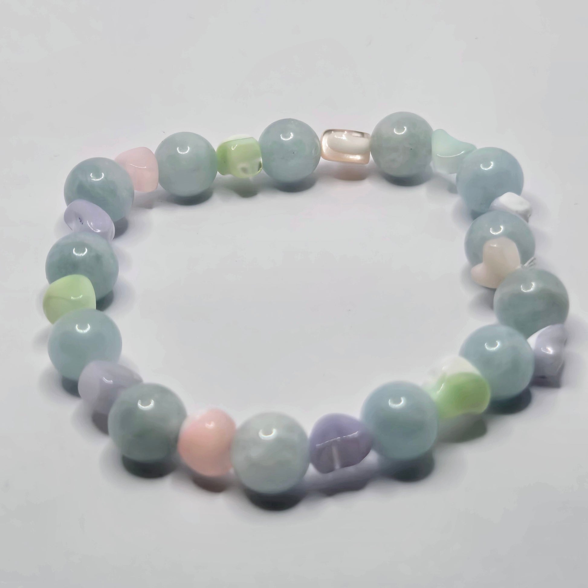 A tranquil synergy for clear communication and inner purity. The Mother of Pearl nuggets symbolize purity and maternal protection, supporting the Aquamarine power to foster courageous, peaceful communication. This piece allows you to express your truth with clarity and calming grace.