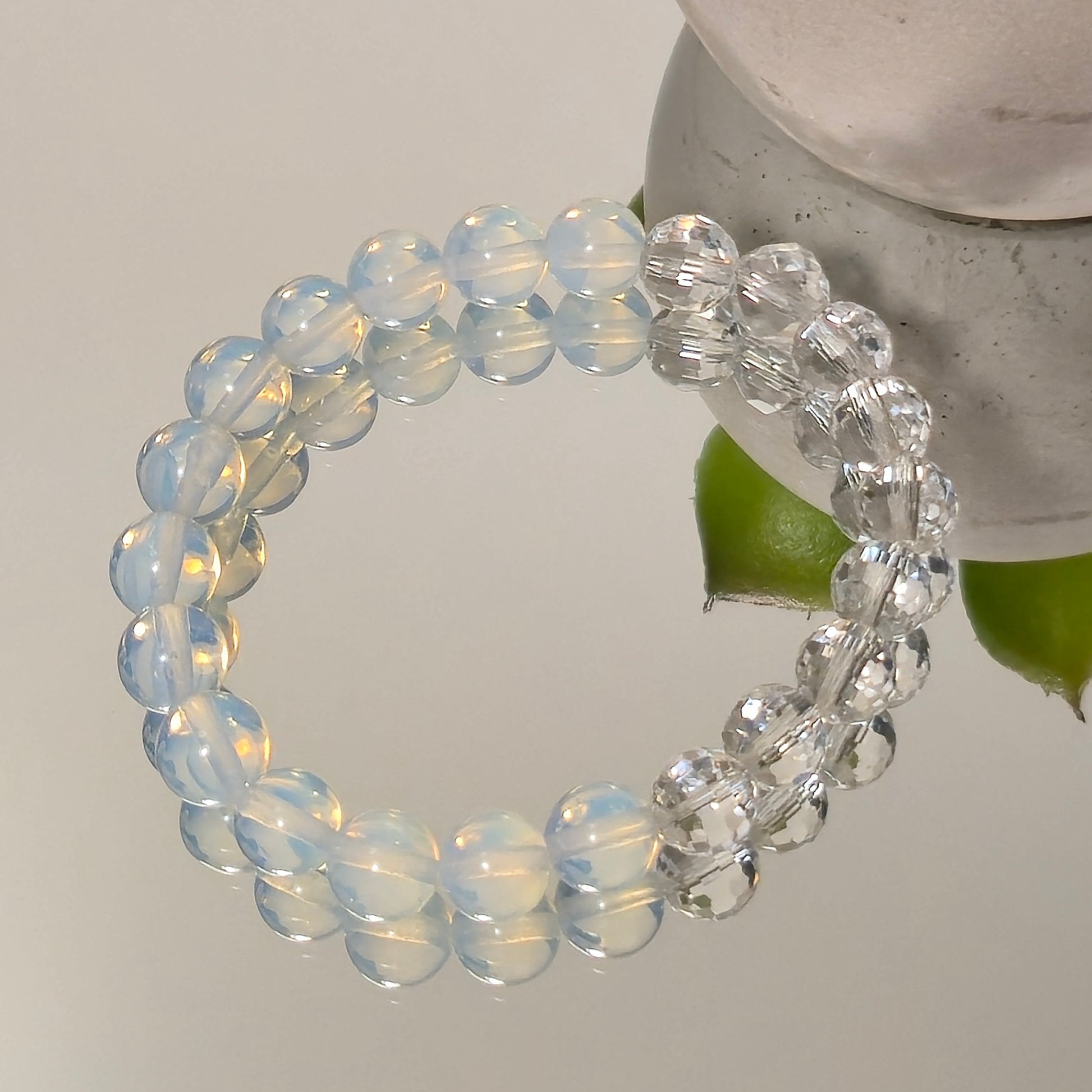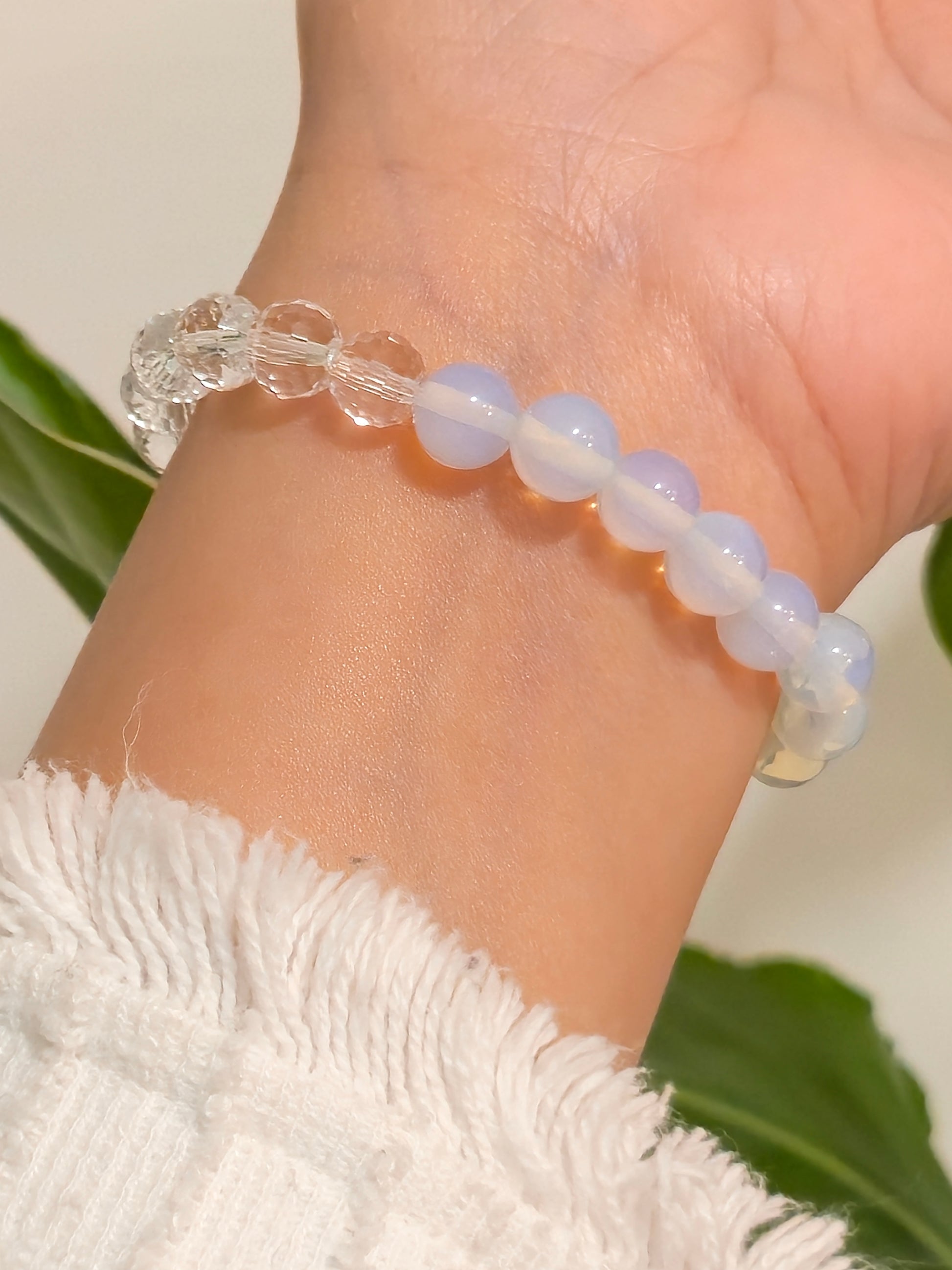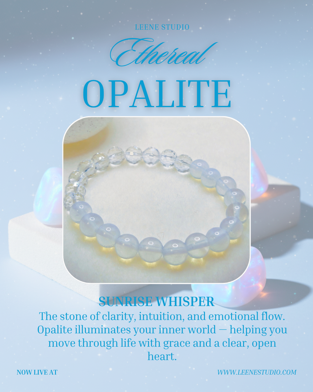 L'opale irisée scintille aux côtés des cristaux Helenski , reflétant la douce lueur du soleil levant. Portez ce bracelet comme une douce incitation à éveiller votre optimisme intérieur et à aborder chaque pas avec espoir et confiance.
