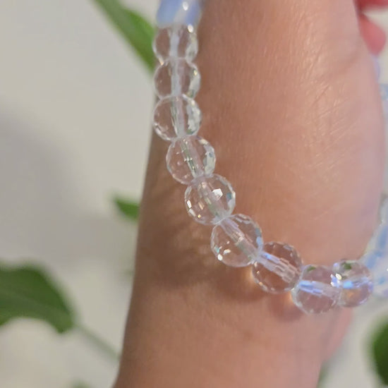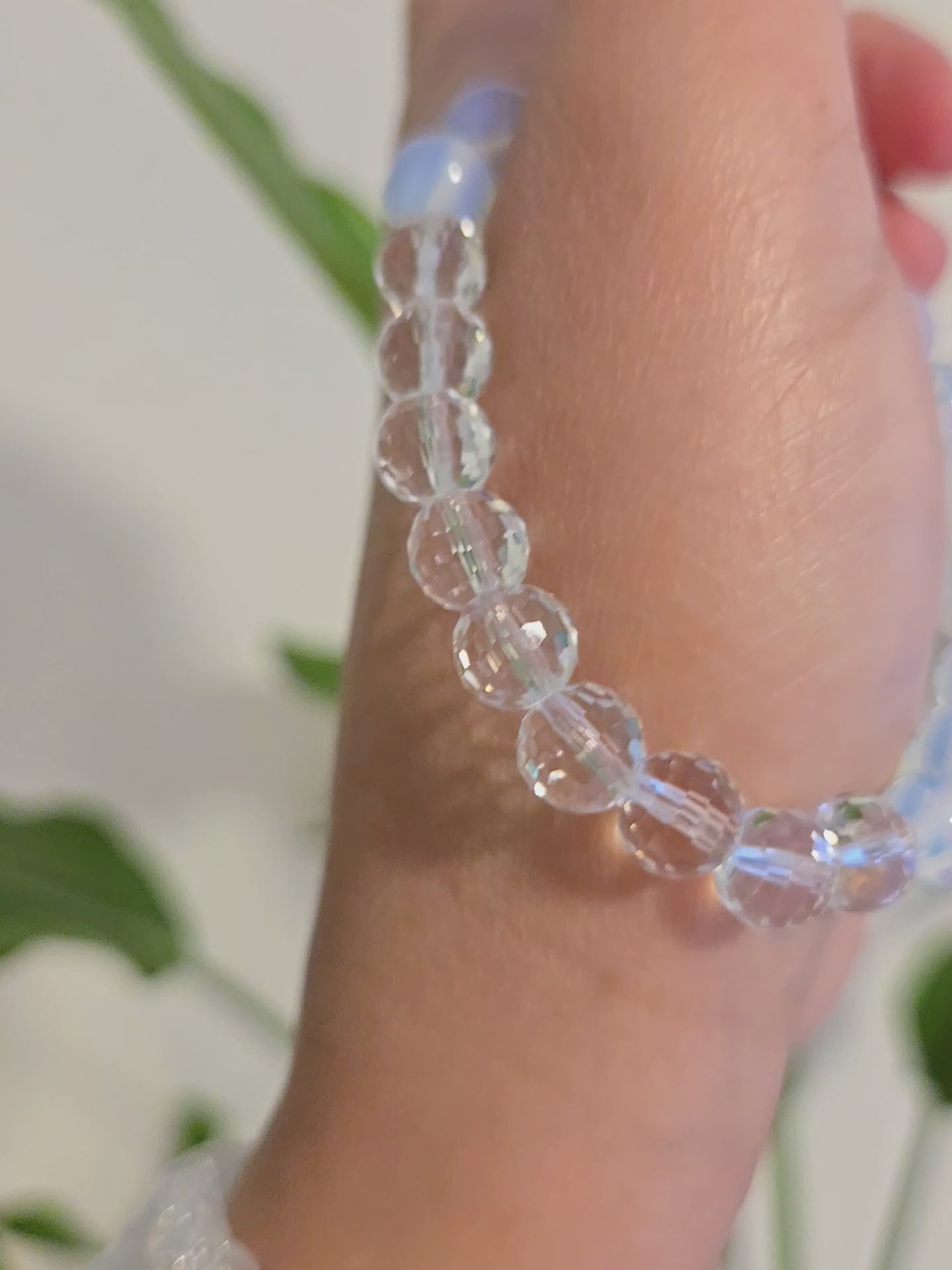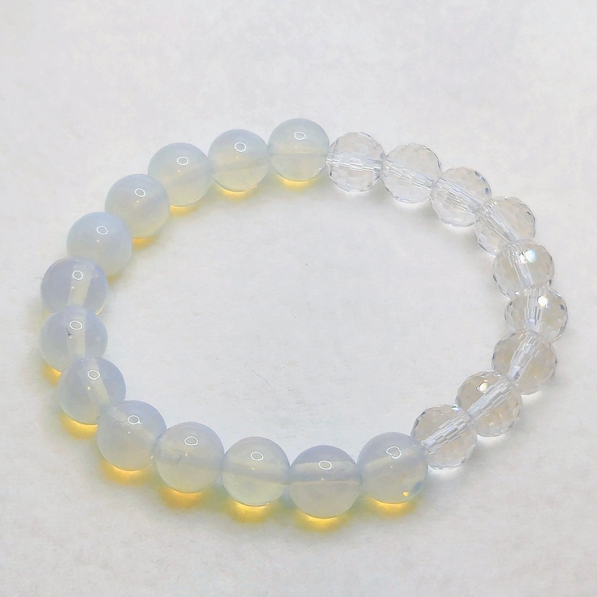 L'opale irisée scintille aux côtés des cristaux Helenski , reflétant la douce lueur du soleil levant. Portez ce bracelet comme une douce incitation à éveiller votre optimisme intérieur et à aborder chaque pas avec espoir et confiance.
