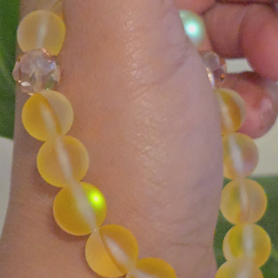 Each frosted amber bead is formed through the ancient craft of glassmaking—a dance of flame, skill, and intention—resulting in a bracelet that captures light with a gentle, golden glow. The amber frost finish embodies warmth, creativity, and joy, offering a radiant companion for everyday elegance.