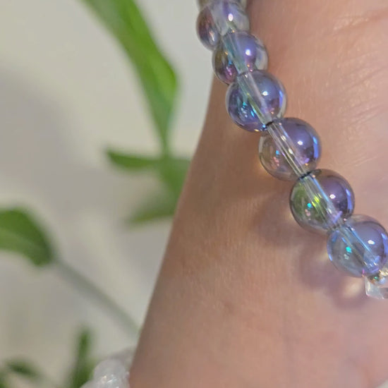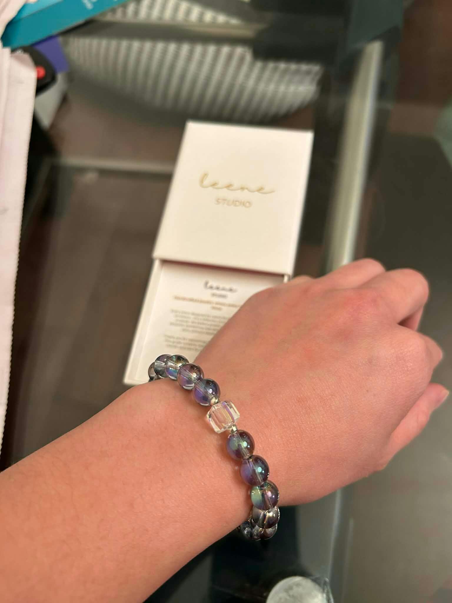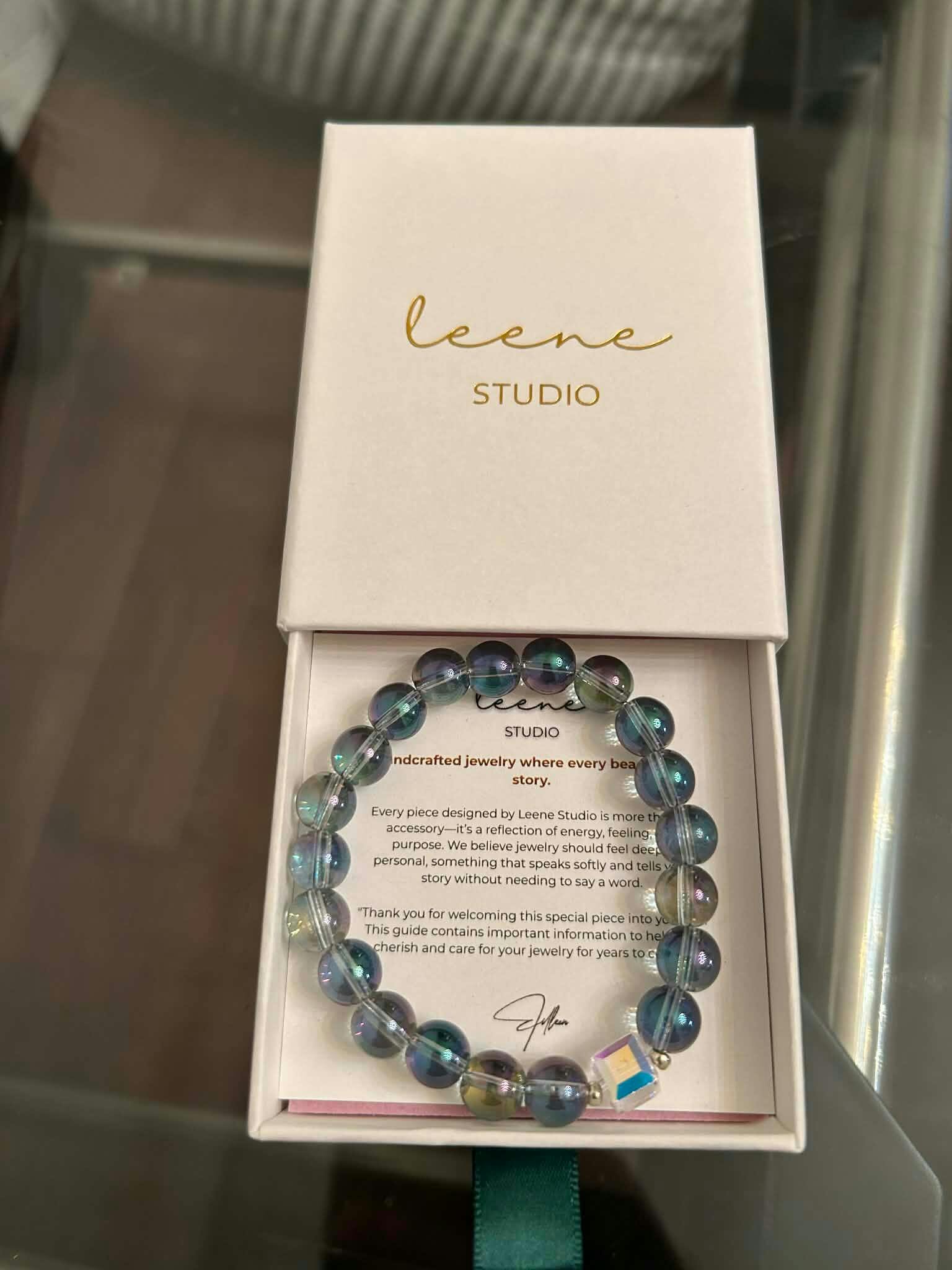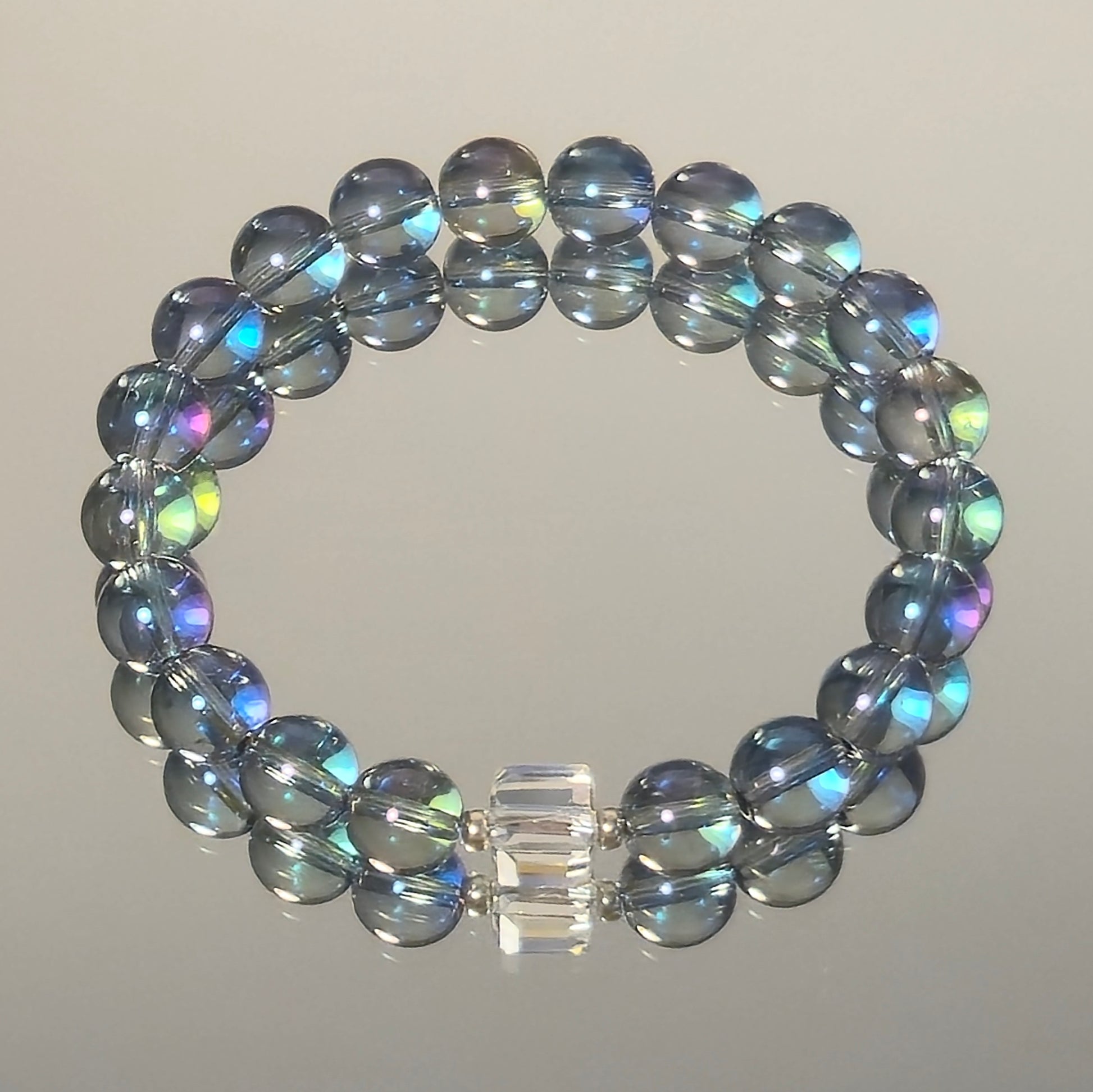 Slip on Light and Shadow and feel the harmony of opposites. The deep iridescence and sparkling cubes create a dynamic presence on your wrist—a reminder that you are both the mystery and the light, and both are equally beautiful.