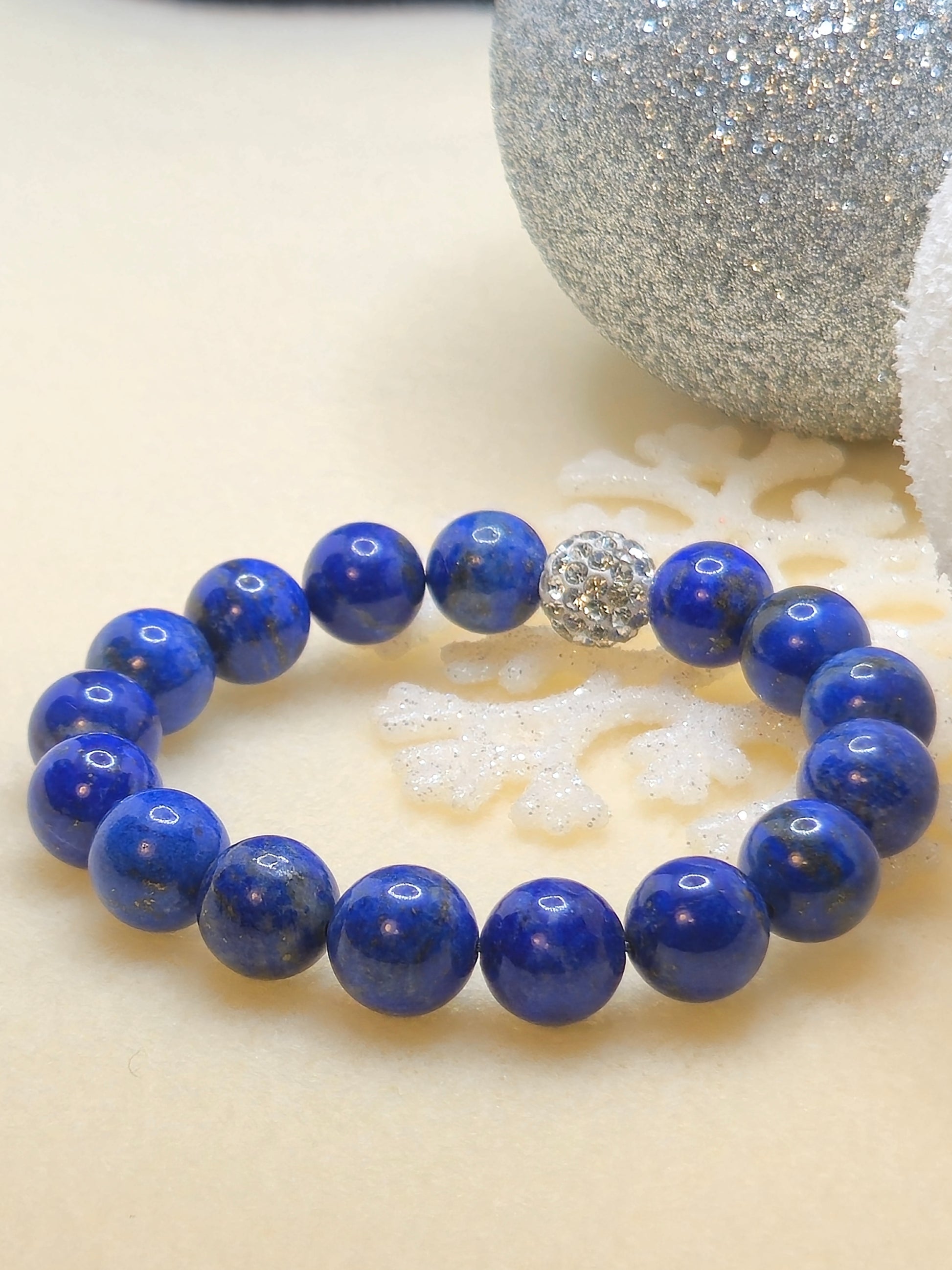 Lapis Lazuli has adorned royalty for millennia, prized for its rich indigo depths flecked with golden pyrite. Each bead carries the timeless allure of starlit skies, grounding you in ancient wisdom while the crystal accents add a modern, luminous edge.
