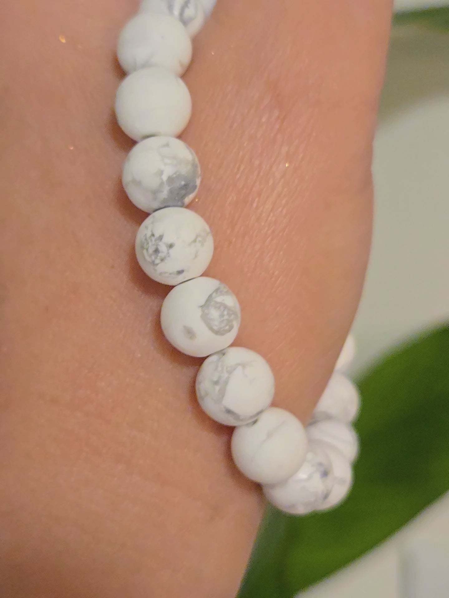 The Intention: The stone of calm and patience. White howlite quiets the mind and soothes restless thoughts, inviting peace into your daily life. This delicate gemstone piece absorbs stress and tension, acting as a gentle reminder to slow down, breathe, and find stillness in the present moment.