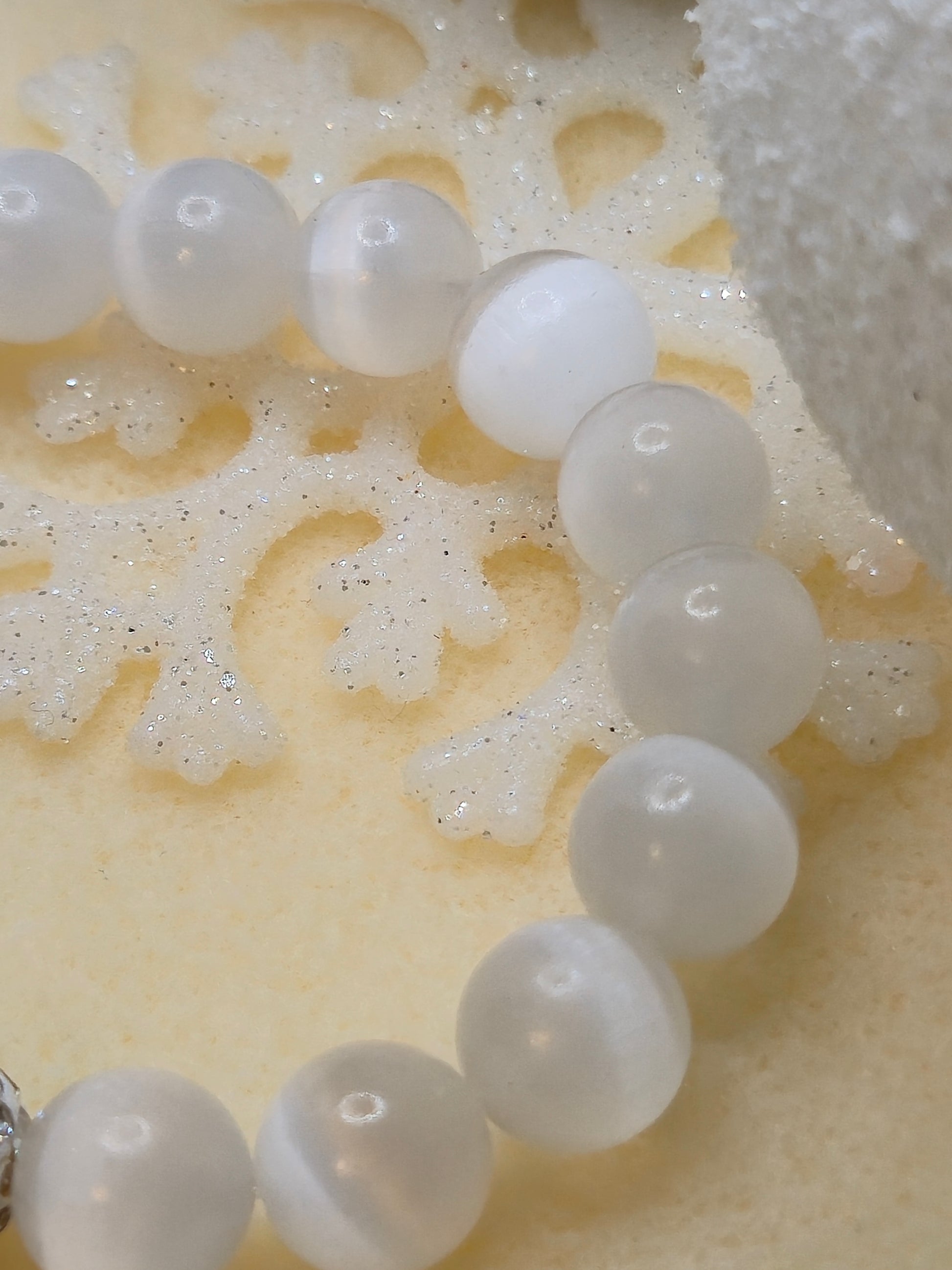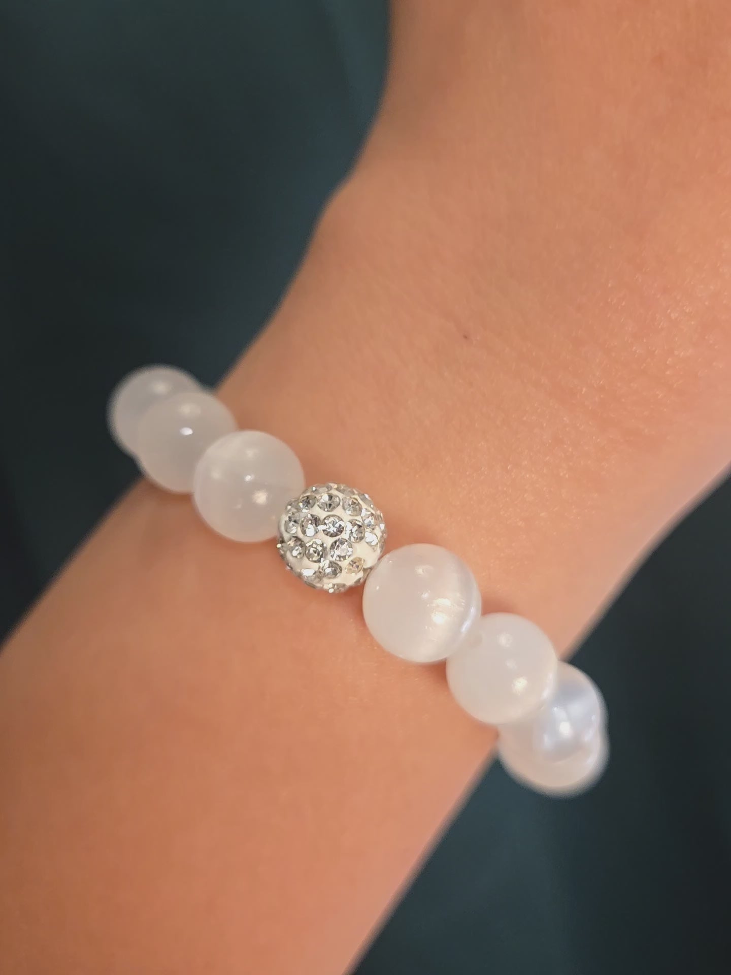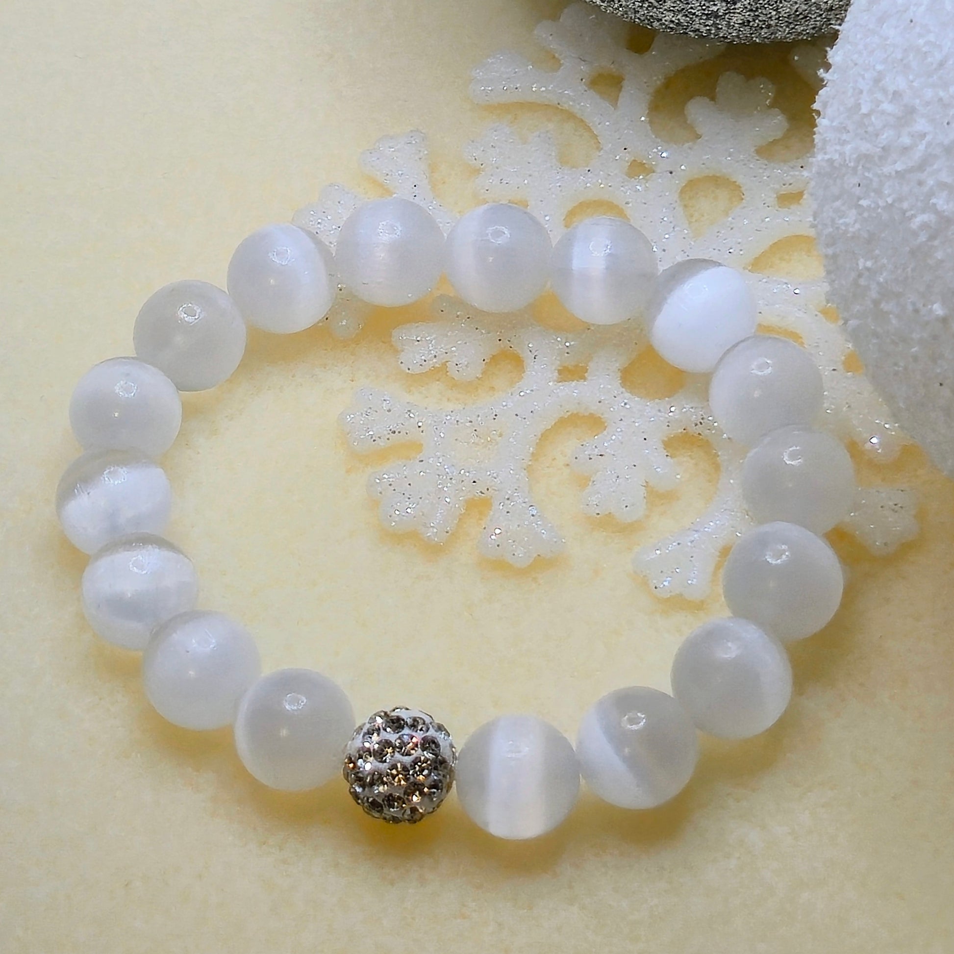 Selenite has been revered for centuries, prized for its luminous white clarity and calming energy. Each bead carries the timeless allure of moonlight and peace, grounding you in serene harmony while the crystal accents add a modern, luminous edge.